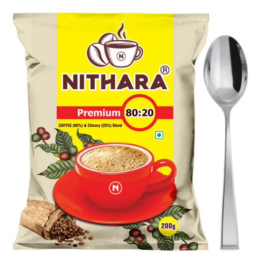 Nithara Premium | 80% Coffee, 20% Chicory Filter Coffee | 200g (Free Spoon) | 600g (Free Tumbler) | 1kg (Free Dabara Set)